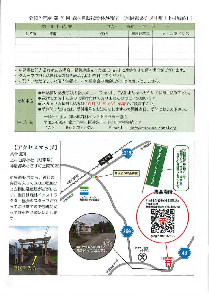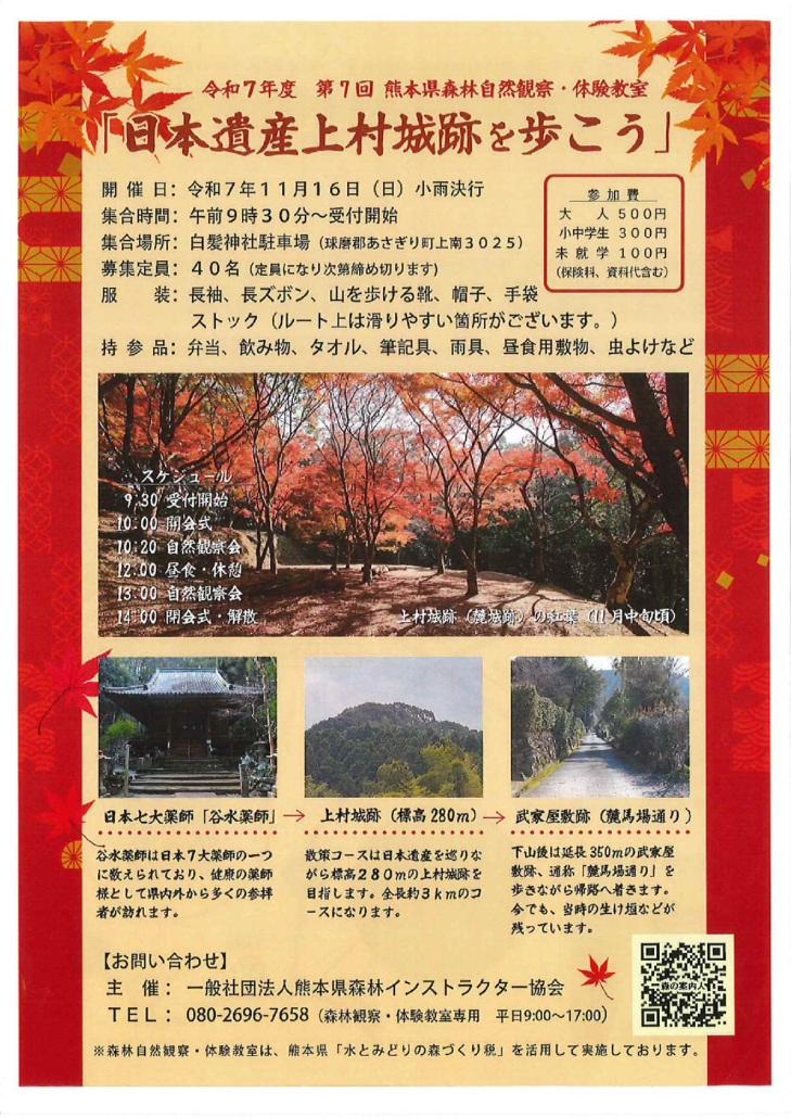 令和7年度 第7回熊本県森林自然観察・体験教室 「日本遺産上村城跡を歩こう」