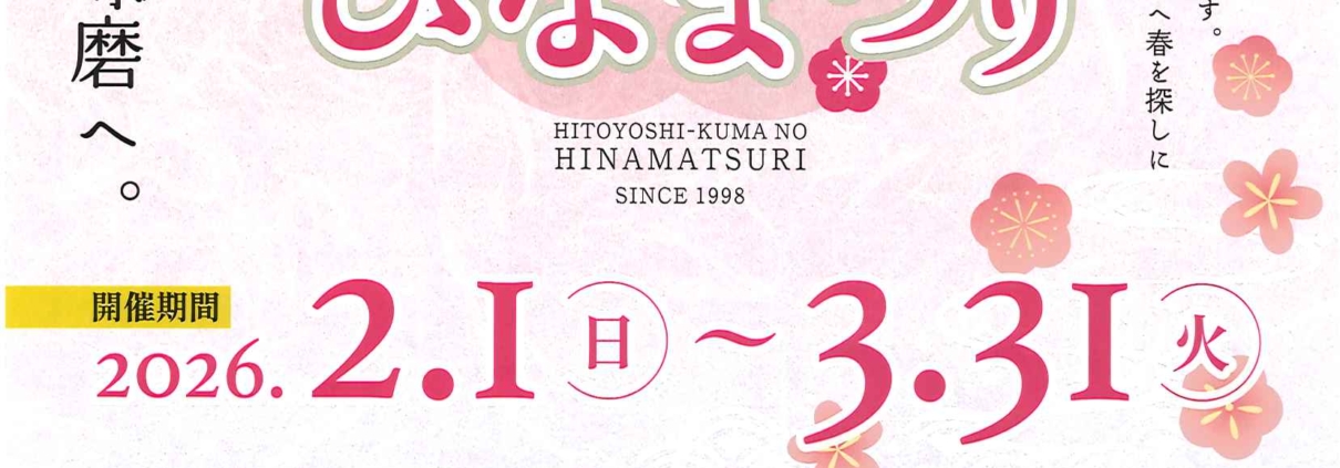 News, 人吉球磨新着情報, 新着情報人吉球磨の ひなまつりさらに読む https://hitoyoshikuma-guide.com/wp-content/uploads/2026/01/20260128121818012.jpg 2339 1656 staff https://hitoyoshikuma-guide.com/wp-content/uploads/2019/07/hitoyoshi_kuma_guide_logo-1.png staff2026-01-28 11:51:572026-01-28 11:51:57人吉球磨の ひなまつり